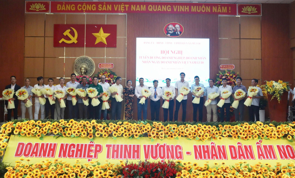 Dịp này, xã Mỹ Lộc tuyên dương doanh nghiệp, doanh nhân có nhiều đóng góp cho sự phát triển của xã trong thời gian qua./.