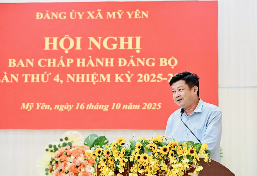 Ngày 16/10, Ban Thường vụ Đảng ủy xã Mỹ Yên tổ chức Hội nghị Ban Chấp hành Đảng bộ xã lần thứ IV nhằm sơ kết tình hình, kết quả thực hiện Nghị quyết 9 tháng và triển khai nhiệm vụ, giải pháp trọng tâm 3 tháng cuối năm 2025. Dự hội nghị có Phó Trưởng ban Tổ chức Tỉnh ủy Tây Ninh Nguyễn Dương Phong Linh.