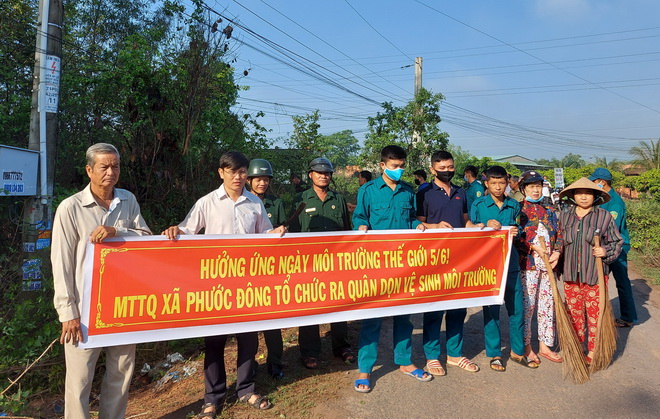 Hưởng ứng Ngày môi trường thế giới, sáng 5.6, tại Trung tâm Văn hóa ấp Phước Đức B, UB.MTTQVN xã Phước Đông, huyện Gò Dầu phối hợp với các tổ chức chính trị-xã hội vận động các hộ dân sống trên tuyến đường số 04-782 liên ấp Phước Đức A và B ra quân dọn vệ sinh môi trường.