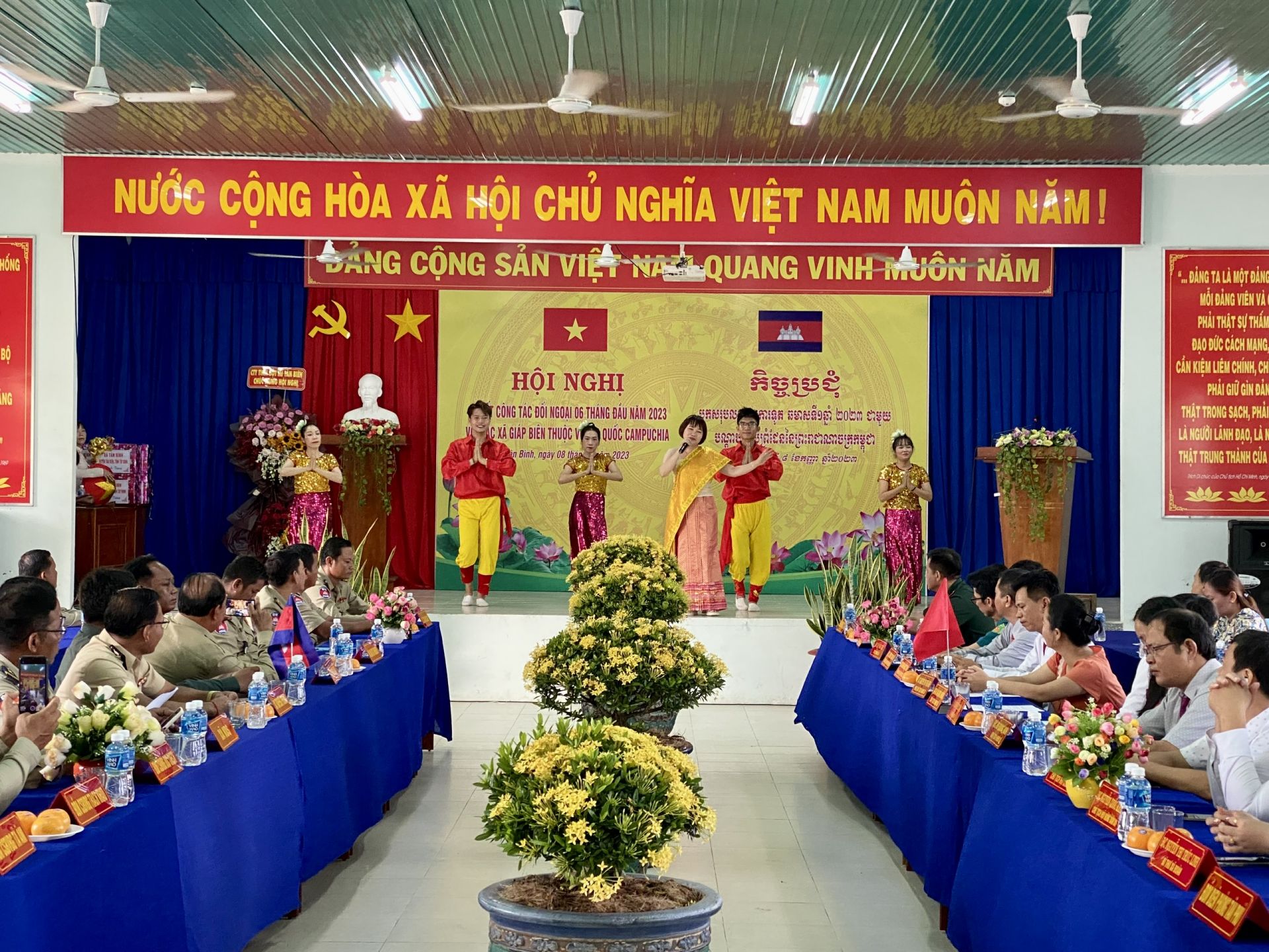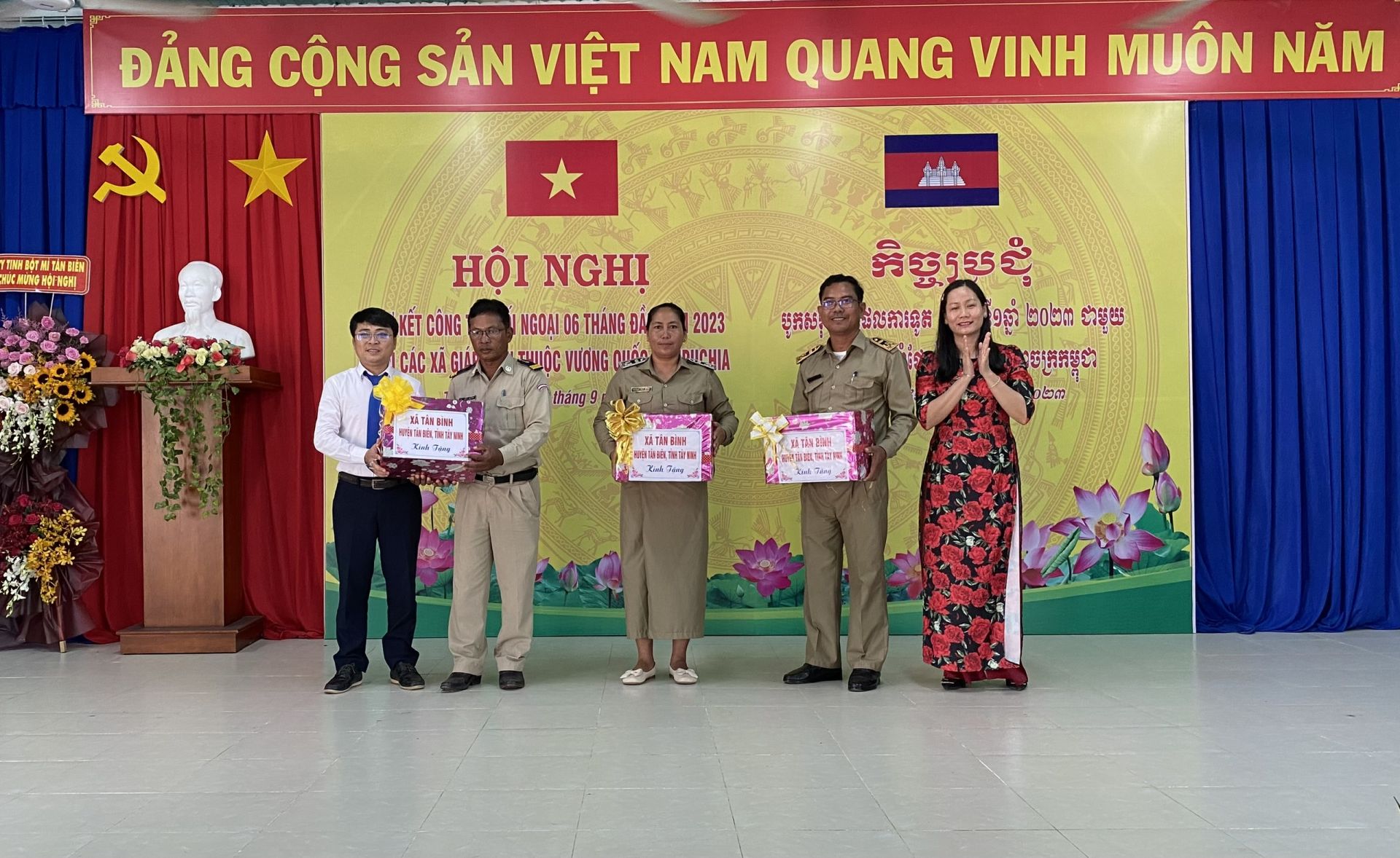 UBND xã Tân Bình (huyện Tân Biên) tổ chức hội nghị sơ kết công tác đối ngoài 6 tháng đầu năm với 3 xã: Cọ, Tơ-ben-phlong, Crobao thuộc 2 huyện Ponhia Ka Ret và Kamcheymear, Vương quốc campuchia.