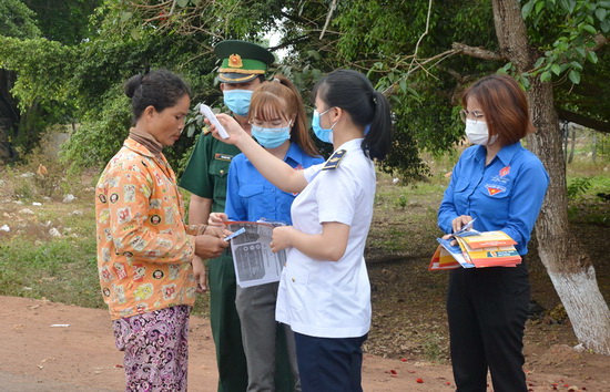 Thời gian qua, Đảng ủy, HĐND, UBND, UB.MTTQ Việt Nam xã Tân Hà (huyện Tân Châu) phối hợp cùng với Đồn biên phòng Tân Hà tổ chức nhiều đợt tuyên truyền và kiểm soát đo thân nhiệt, phát tờ rơi cho những người qua lại trên tuyến biên giới Việt Nam-Campuchia.