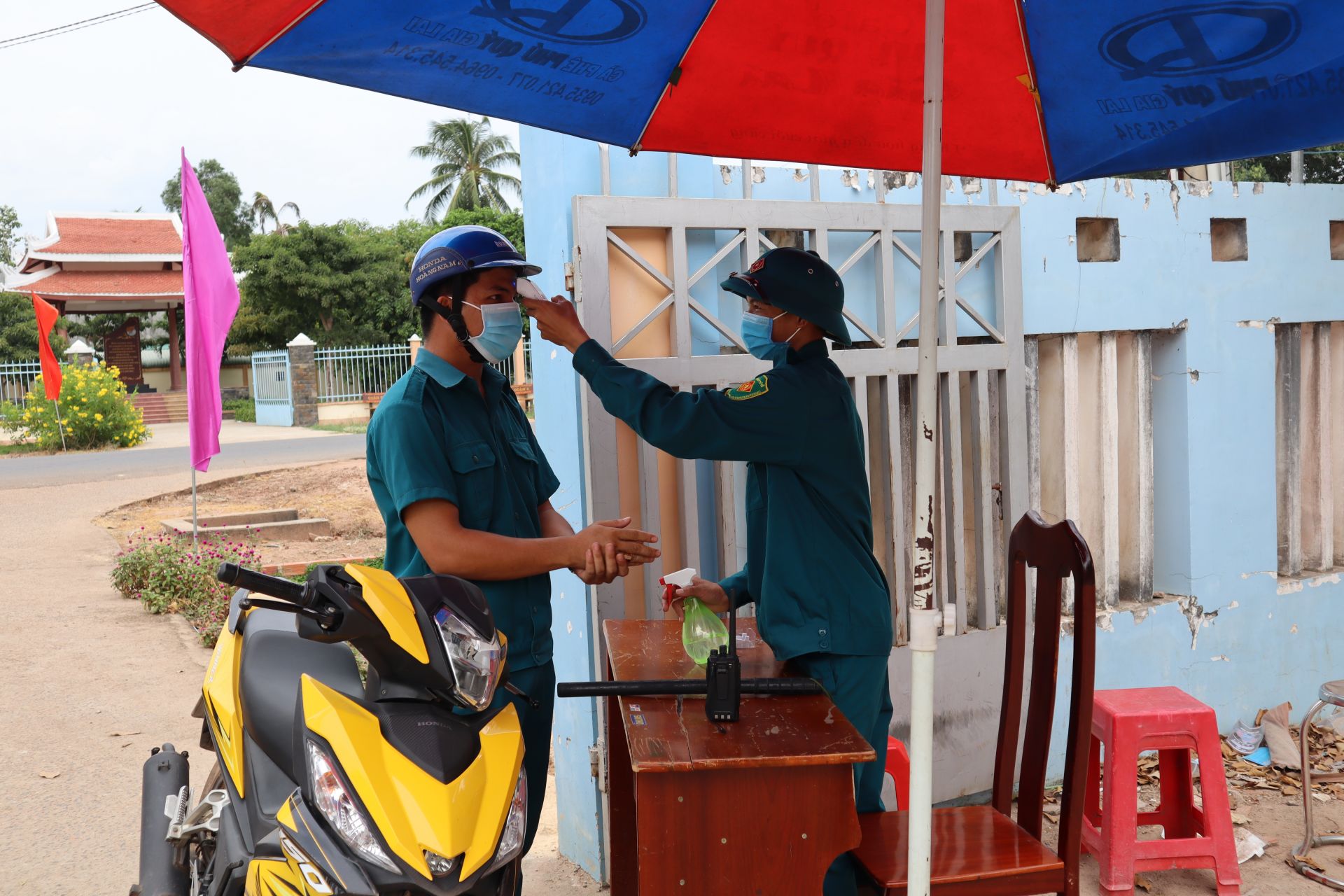 Theo đó, UBND xã yêu cầu 100% người dân đeo khẩu trang trên các tuyến đường, ở nơi đông người, nơi công cộng, trụ sở làm việc, trạm y tế, trường học,... hạn chế tối đa tiếp xúc nơi đông người, chỉ ra đường khi cần thiết. Bên cạnh đó, UBND xã cũng yêu cầu các trụ sở làm việc, trường học phun xịt khử trùng 2 ngày một lần và thực hiện khai báo y tế, đo thân nhiệt tại cổng trụ sở để kiểm soát tình trạng sức khoẻ của người dân.