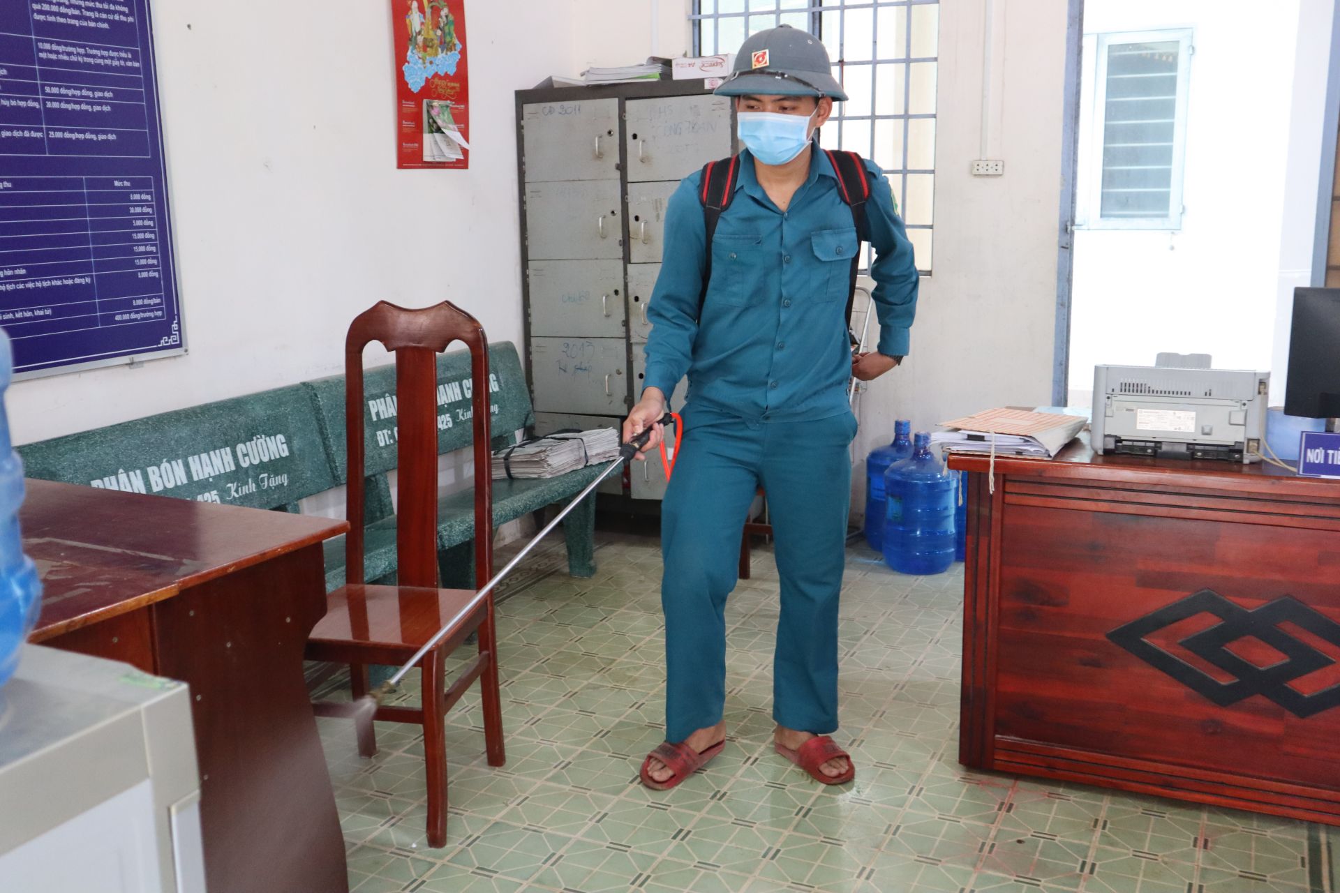 Trụ sở làm việc, trường học, cơ sở y tế thực hiện phun xịt, khử trùng 2 ngày/ 1 lần.