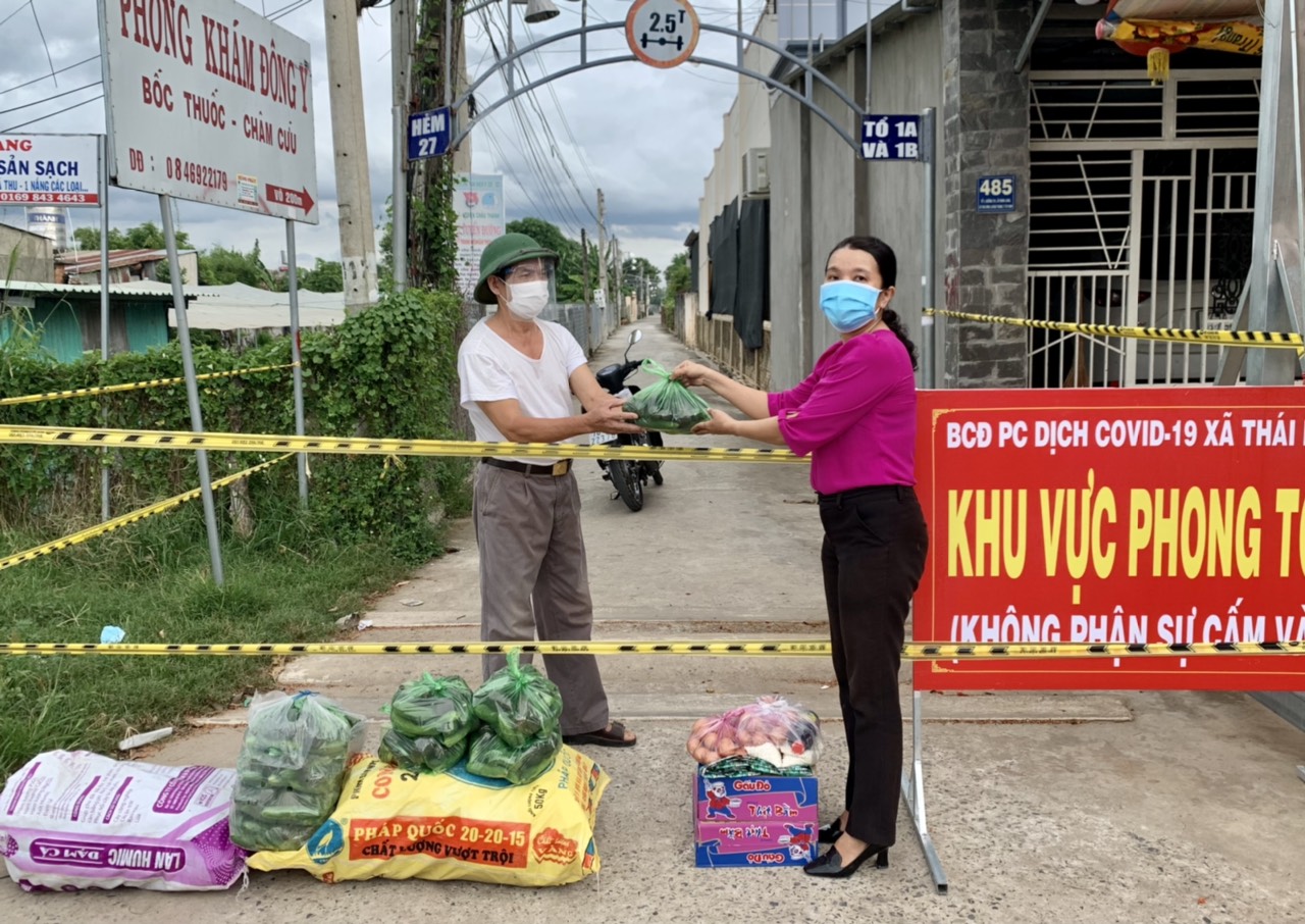 Chiều 28.7, Hội Nông dân xã Thái Bình (huyện Châu Thành) tổ chức trao tặng 50kg rau, 60kg dưa leo, 60kg củ môn, 21kg cá... cho hộ dân trong các khu vực phong tỏa trên địa bàn.