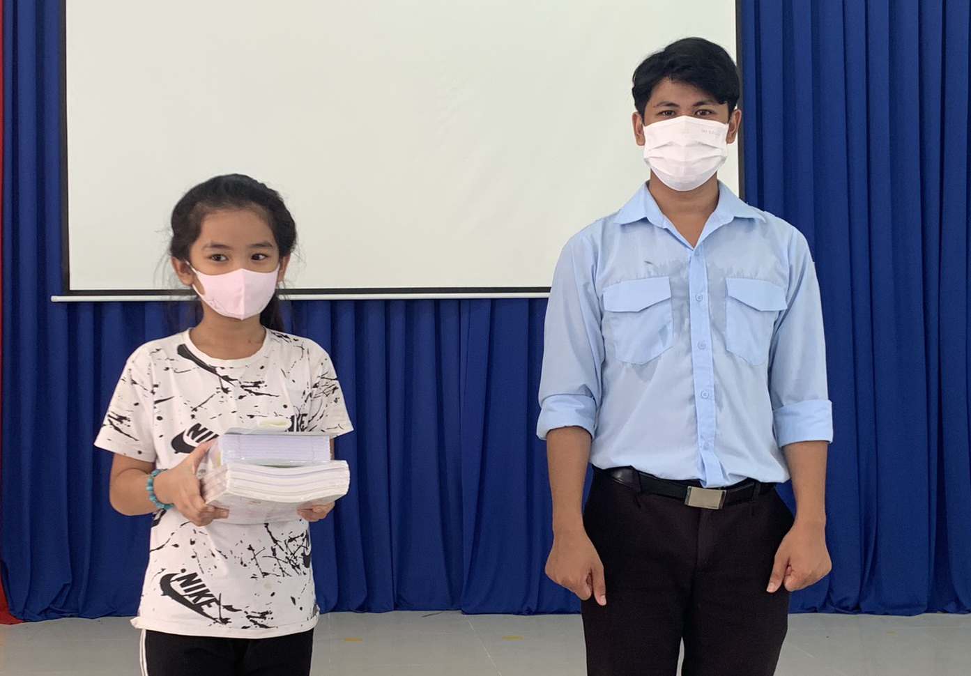 Trao tặng sách, vở cho học sinh có hoàn cảnh khó khăn trên địa bàn xã Thái Bình (huyện Châu Thành).