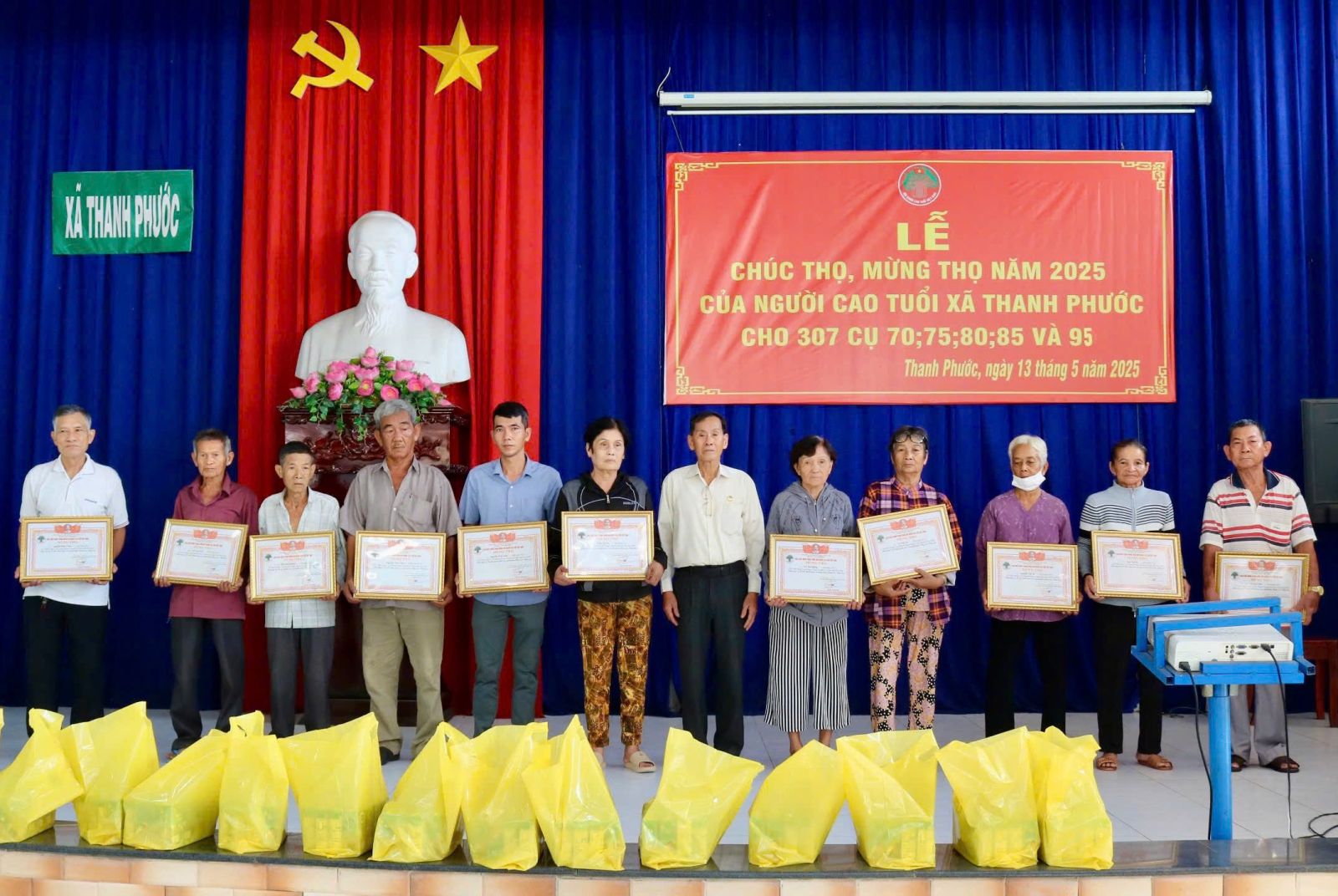 Tại buổi lễ, ông Lê Văn Tới- Chủ tịch Hội NCT xã Thanh Phước ôn lại ý nghĩa của việc mừng thọ, chúc thọ đối với NCT. Lãnh đạo UBND xã lần lượt trao giấy chứng nhận và quà của Hội NCT Việt Nam cho 307 cụ ông, cụ bà từ 70 đến 95 tuổi, với tổng số tiền hơn 200 triệu đồng.
