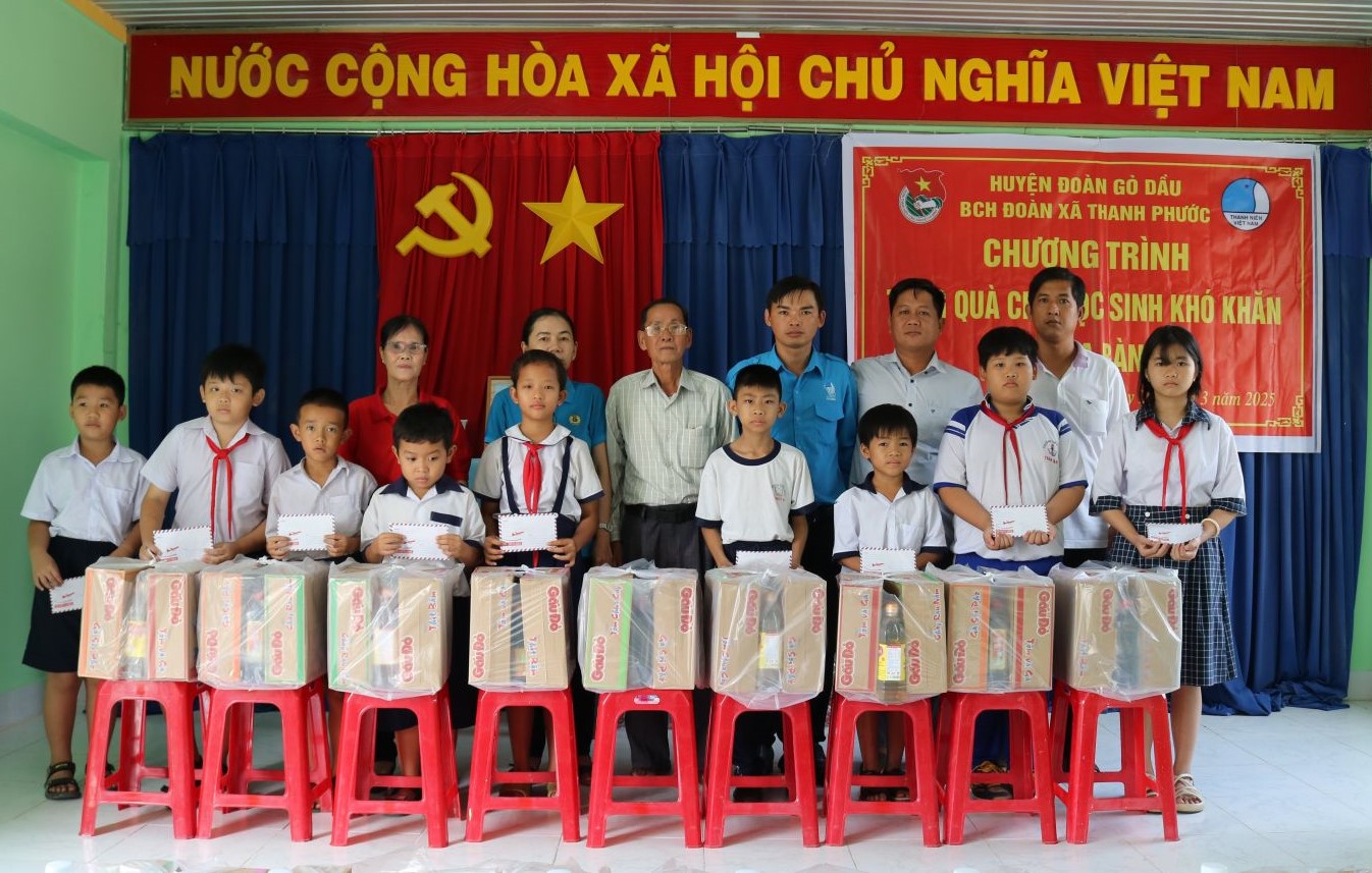 Ngày 28.3, Xã đoàn Thanh Phước (huyện Gò Dầu) tổ chức trao tặng học bổng, quà cho học sinh có hoàn cảnh khó khăn năm học 2025 - 2026 trên địa bàn xã.