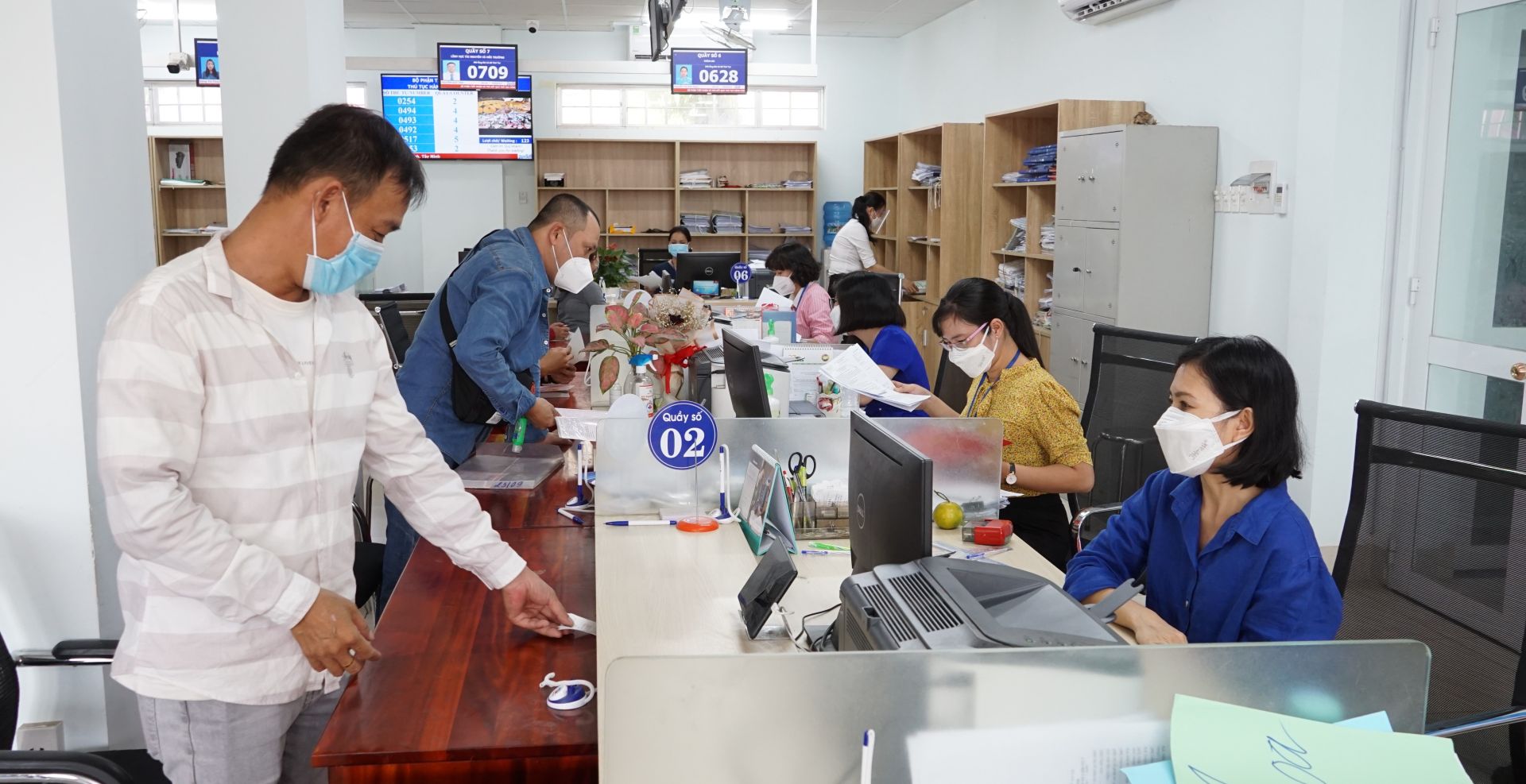 Người dân làm thủ tục hành chính tại Trung tâm hành chính công thị xã Hoà Thành.