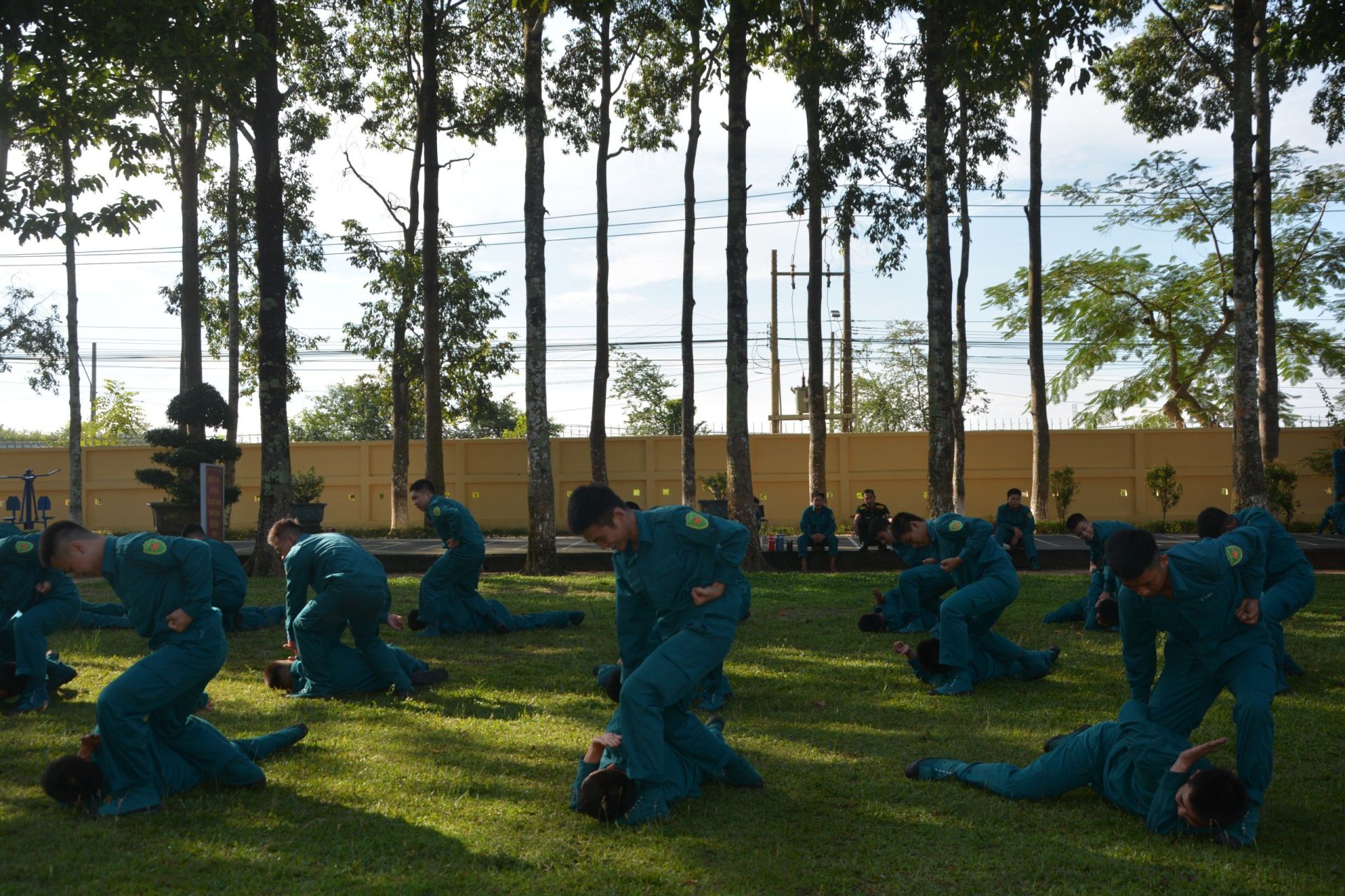 Dân quân tự vệ thành phố Tây Ninh huấn luyện võ thuật.