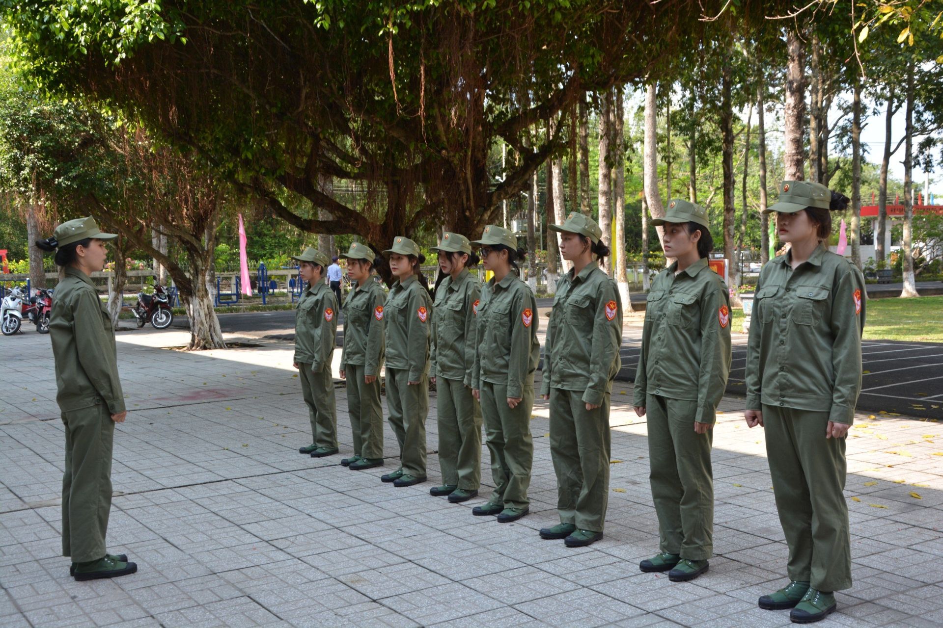 Sinh viên Trường Cao đẳng Sư phạm Tây Ninh huấn luyện điều lệnh đội ngũ.