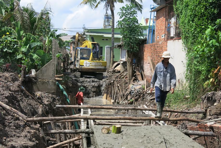 Theo đơn vị thi công, chỉ hệ thống mương ở cặp đường đi mới có thiết kế nắp đậy. Riêng hệ thống mương chính do chủ yếu đi sau nhà dân nên không có thiết kế nắp.
