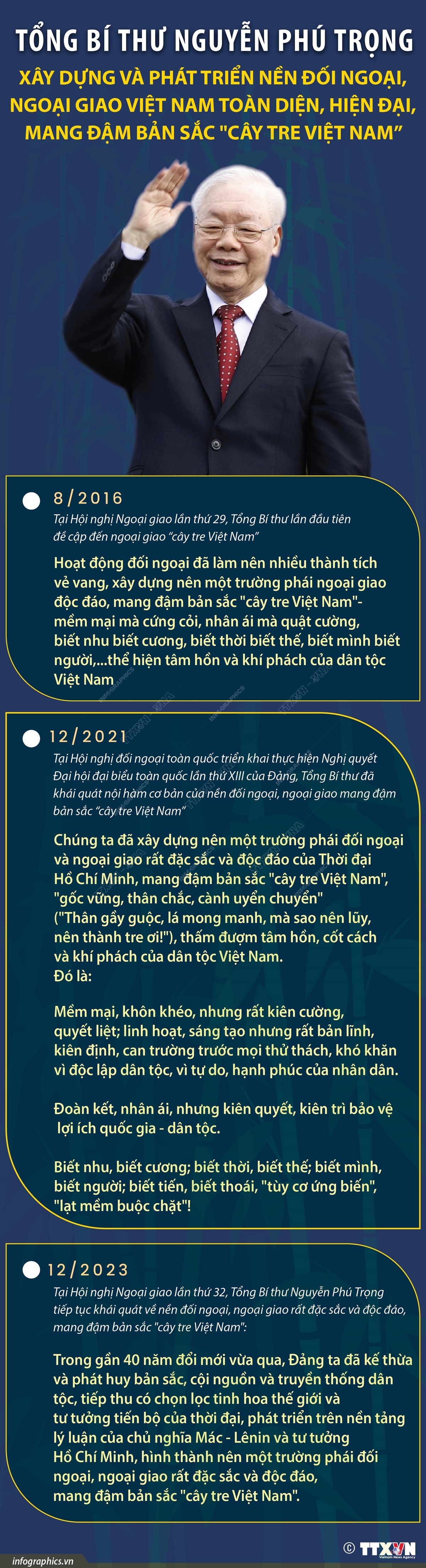 Phát biểu chỉ đạo tại Hội nghị Ngoại giao lần thứ 29 năm 2016, Tổng Bí thư Nguyễn Phú Trọng lần đầu tiên đề cập đến ngoại giao “cây tre Việt Nam” và đến Hội nghị Hội nghị Đối ngoại toàn quốc vào tháng 12/2021, Tổng Bí thư đã khái quát nội hàm cơ bản của nền đối ngoại, ngoại giao mang đậm bản sắc “cây tre Việt Nam”, "gốc vững, thân chắc, cành uyển chuyển", thấm đượm tâm hồn, cốt cách và khí phách của dân tộc Việt Nam.