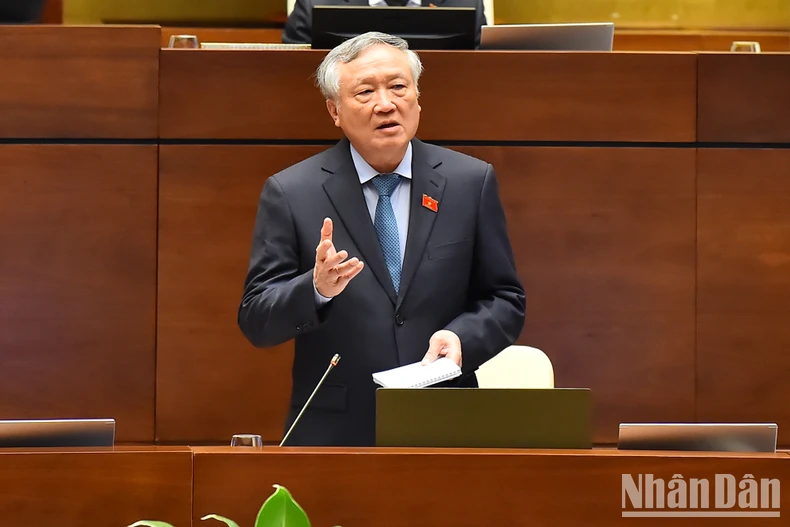 Chánh án Tòa án nhân dân tối cao Nguyễn Hòa Bình phát biểu giải trình, làm rõ thêm một số vấn đề đại biểu Quốc hội nêu. (Ảnh: THỦY NGUYÊN)