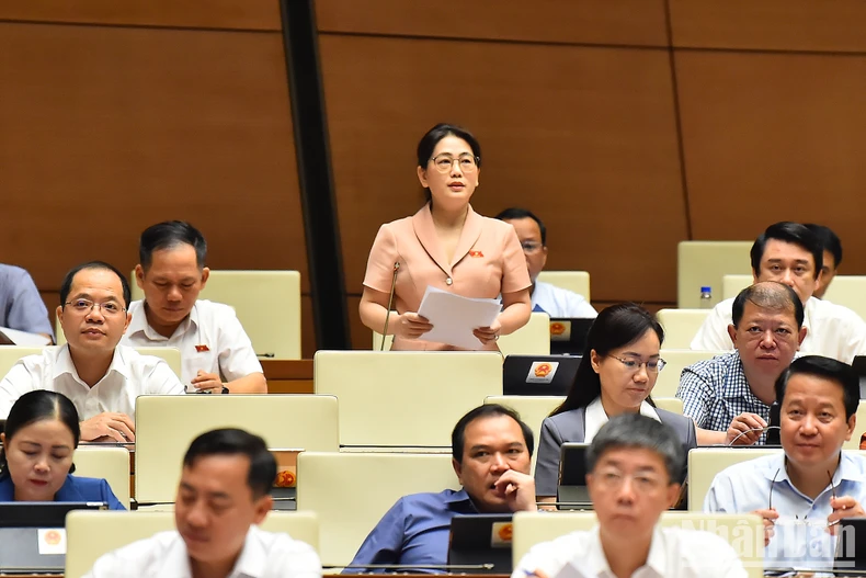 Đại biểu Phan Thị Nguyệt Thu (Hà Tĩnh) phát biểu thảo luận. (Ảnh: THỦY NGUYÊN)