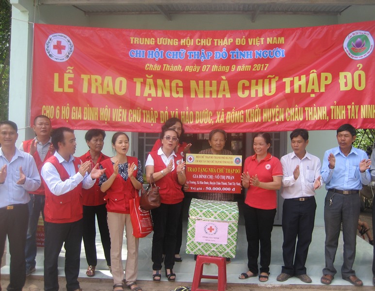 Lễ trao tặng nhà Chữ thập đỏ cho hội viên nghèo.
