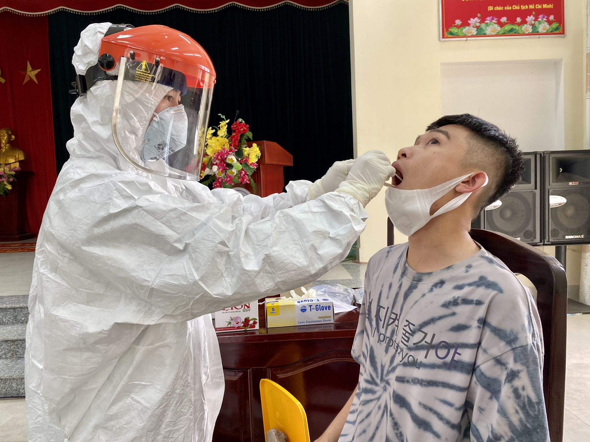 Các thanh niên được lấy mẫu xét nghiệm phòng chống Covid-19.
