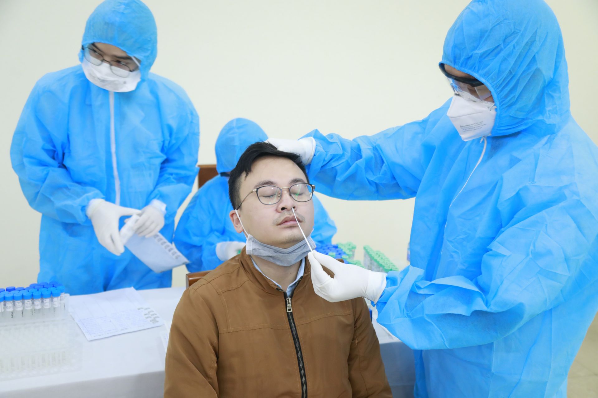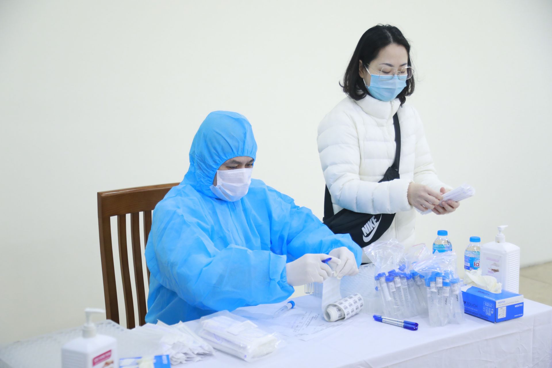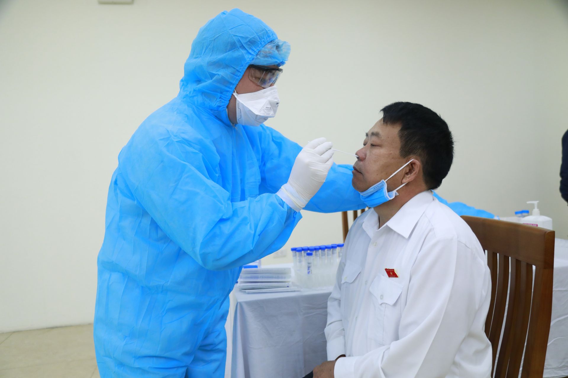 Phóng viên, kỹ thuật viên của gần 100 cơ quan báo chí tham gia đưa tin tại kỳ họp lần này được xét nghiệm.
