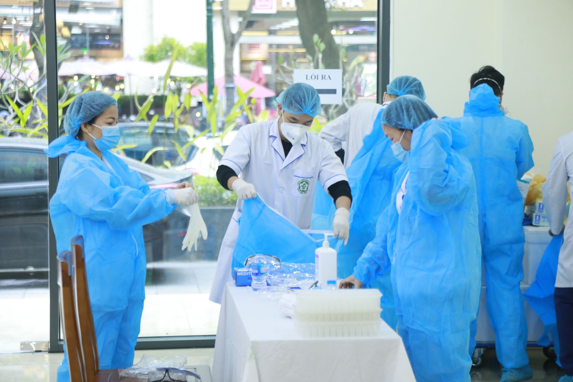 Nhân viên Trung tâm kiểm soát bệnh tật (CDC) Hà Nội chuẩn bị tổ chức thực hiện xét nghiệm tại 35 Ngô Quyền, Hà Nội.