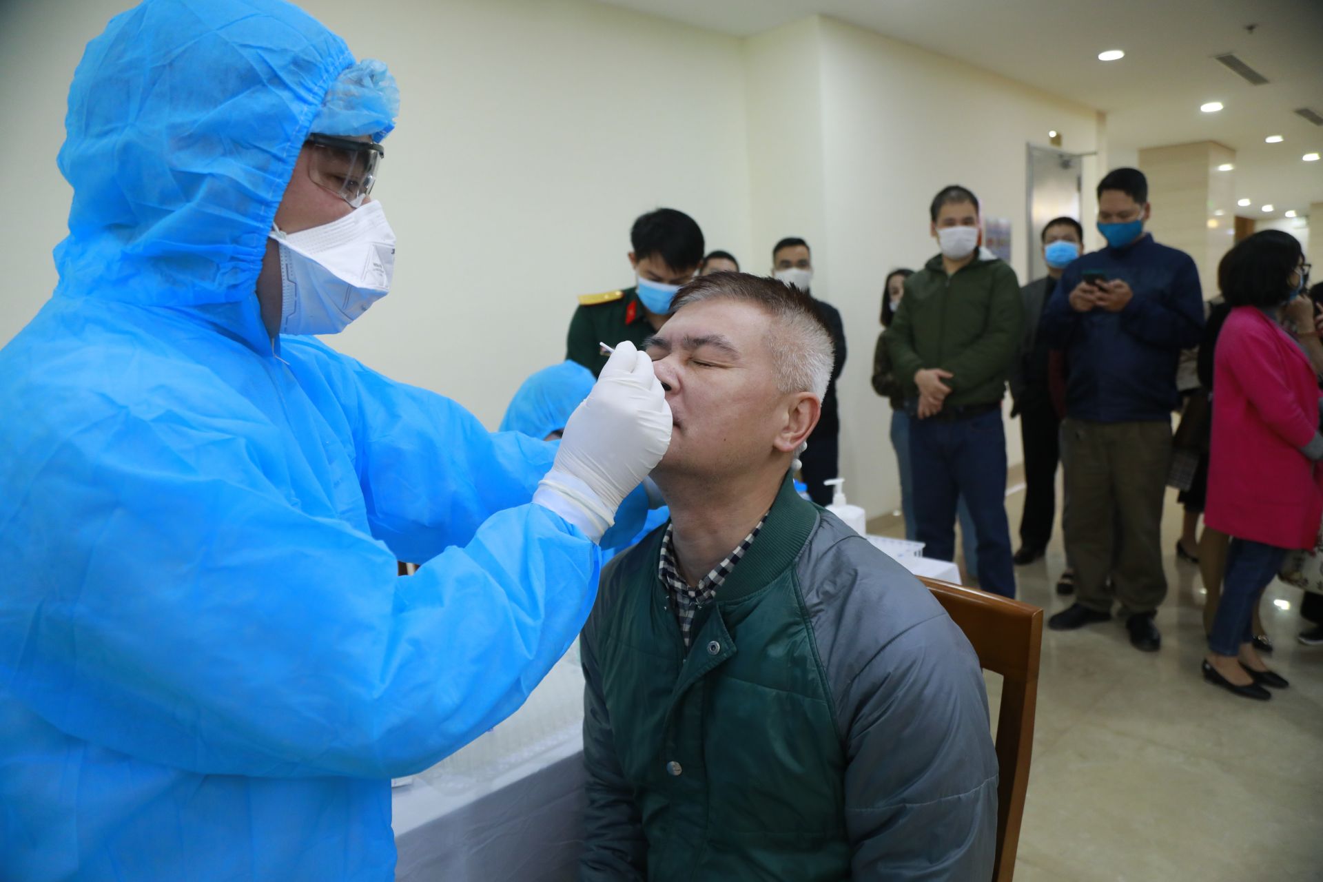 Hàng trăm phóng viên, kỹ thuật viên của các cơ quan báo chí tham gia đưa tin tại kỳ họp thứ 11 của Quốc hội được xét nghiệm SARS-CoV-2 bằng phương pháp PCR vào sáng 22/3.