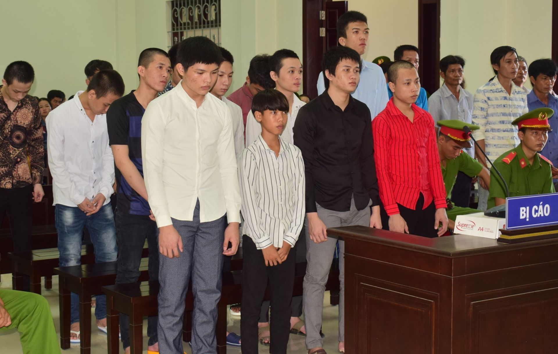 13 bị cáo gồm: Phạm Minh Nhí (sinh năm 1999), Tống Văn Ninh, Nguyễn Thành Thương, Đinh Trường Yên (cùng sinh năm 2000), Trần Ngọc Giàu, Lê Văn Quỳnh, Nguyễn Trung Thắng (cùng sinh năm 2002), Phạm Văn Long, Nguyễn Văn Linh (sinh năm 2003), Huỳnh Minh Hiếu, Phạm Thanh Thoàng, Nguyễn Văn Có (sinh năm 2001) và Nguyễn Ninh Thuận (sinh năm 2004). Tất cả cùng ngụ huyện Tân Châu, bị Viện Kiểm sát nhân dân tỉnh Tây Ninh truy tố về tội giết người.