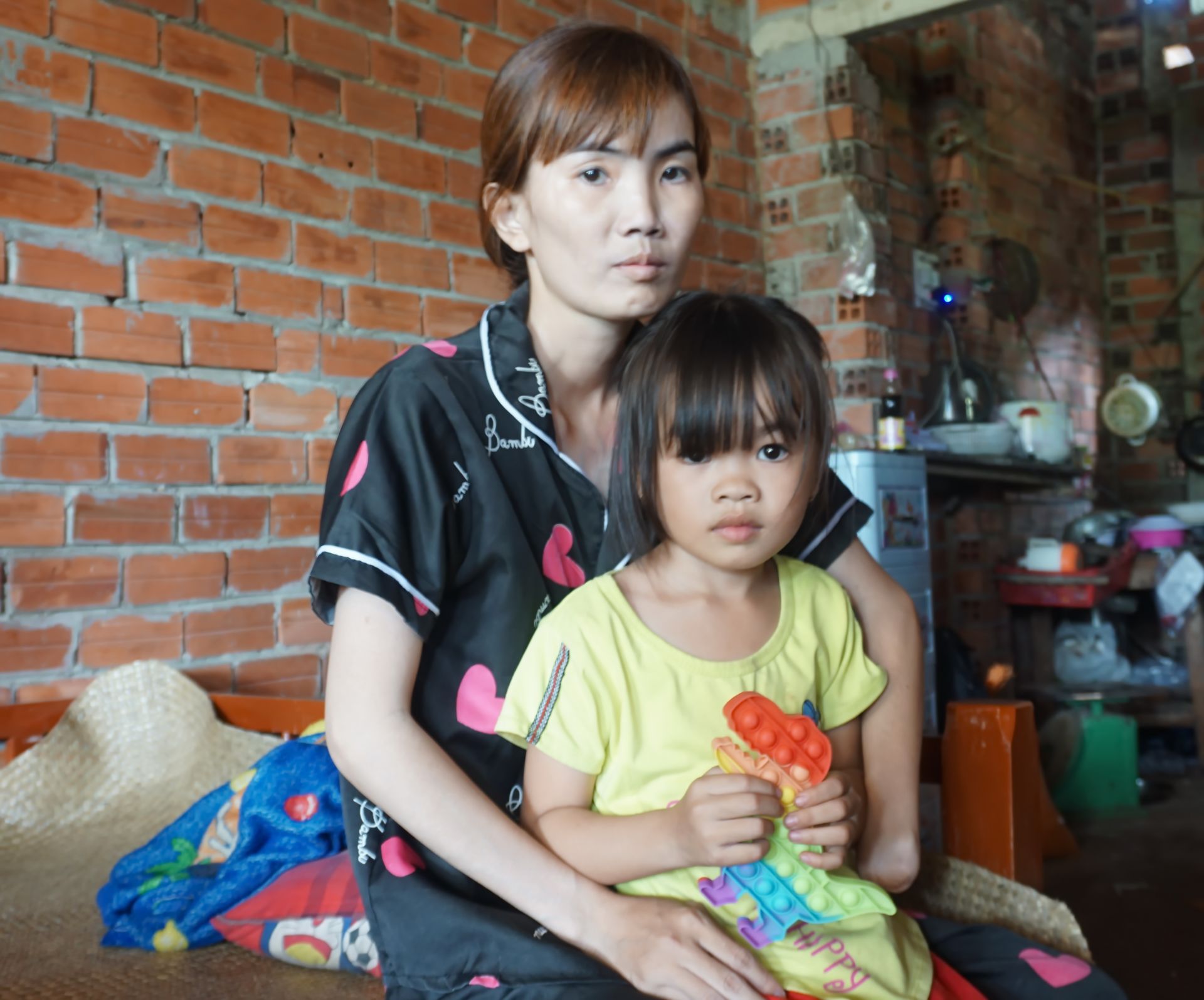 Để có tiền khám, điều trị bệnh chị Thi vay mượn từ những người thân nhưng món nợ này với chị rất khó trả , bởi sức khỏe ngày một kém, còn việc buôn bán thì khó khăn do dịch bệnh Covid-19. Những ngày qua, mẹ con chị Thi sống nhờ tiền trợ cấp xã hội (540.000 đồng/tháng) và tình thương của những người thân, hàng xóm, mạnh thường quân gần xa.