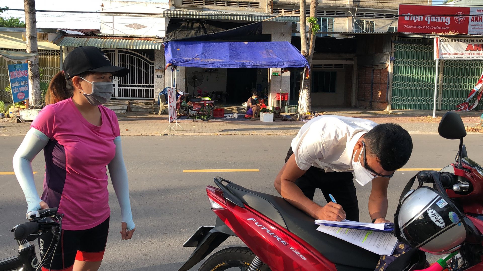 Khi đoàn kiểm tra tại đường ĐT781, đoạn giáp ranh địa bàn phường 1, TP. Tây Ninh phát hiện chị T.T.M.L (ngụ phường 1, TP. Tây Ninh) đi xe đạp qua khu vực này nên đã yêu cầu dừng kiểm tra. Chị L cho biết đạp xe đi tập thể dục.