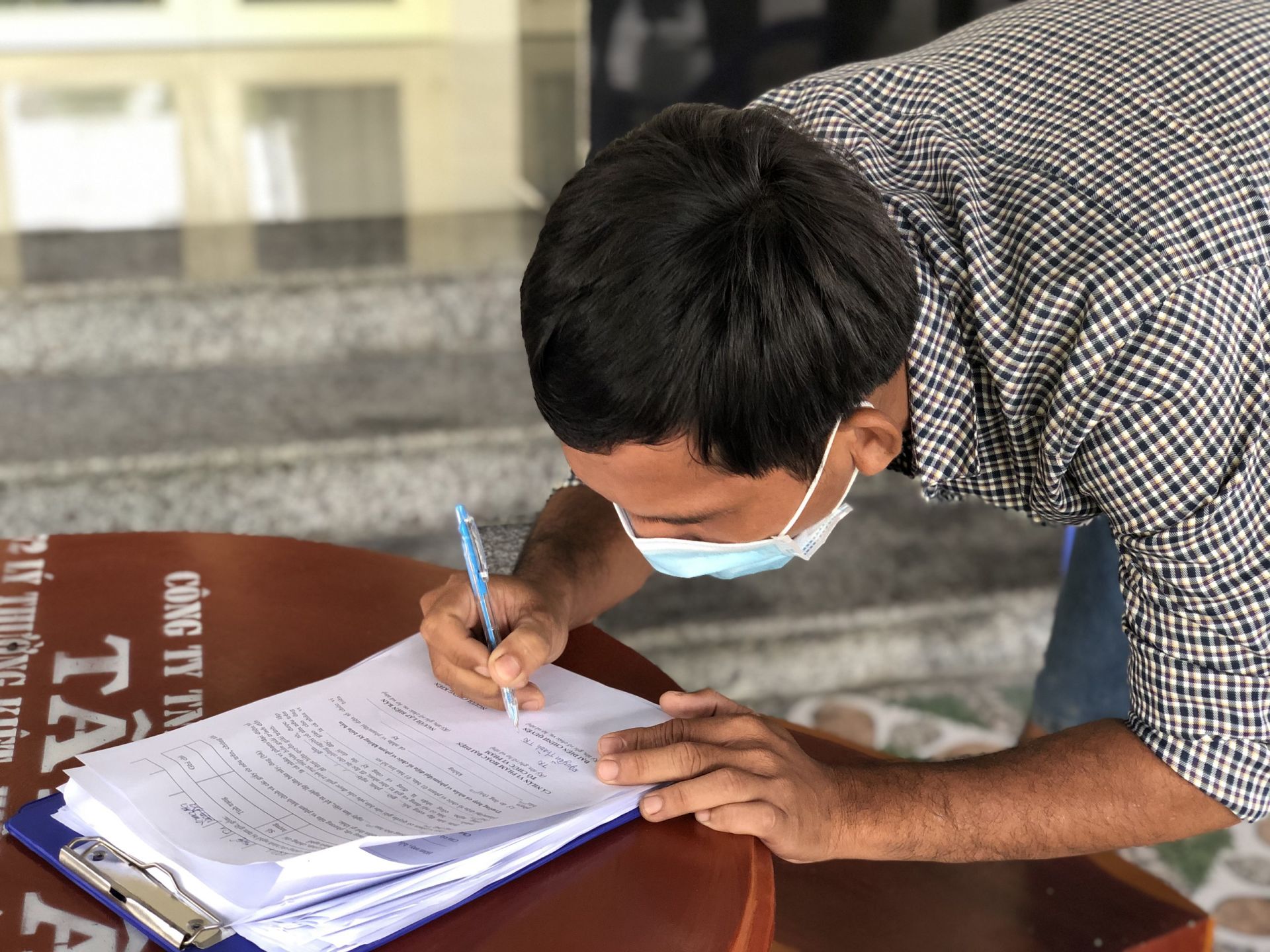 Người dân ký tên vào biên bản xử phạt hành chính do vi phạm Chỉ thị 16.