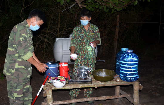 “Những ngày đầu mới đến đây nhận nhiệm vụ còn hơi bỡ ngỡ, nhưng đến nay việc thức đêm tuần tra, ăn dã chiến tạm bợ, làm bạn với các loại côn trùng ban đêm đến thăm đã trở thành quen thuộc” - chiến sĩ trẻ 19 tuổi này hài hước chia sẻ.