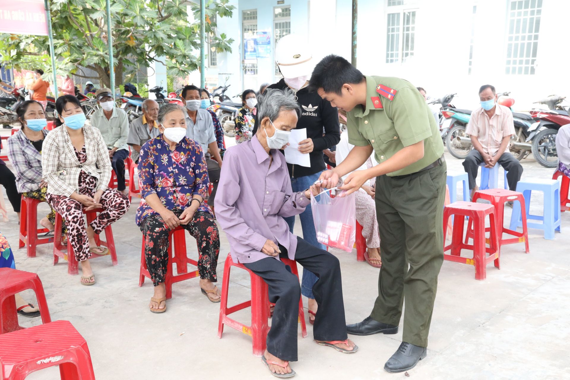 Cán bộ Bệnh xá khám phát thuốc cho người nghèo.