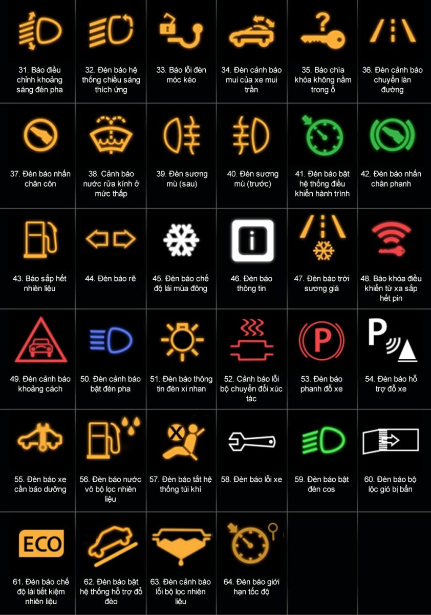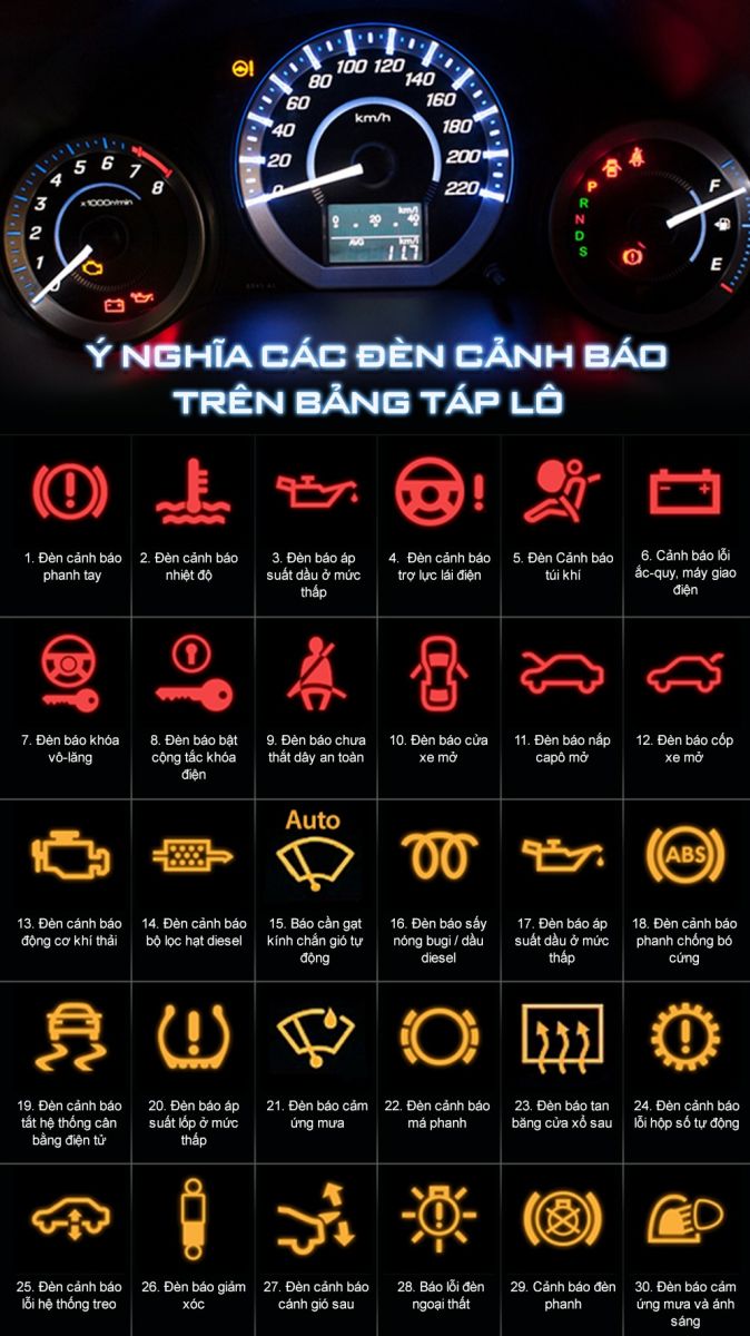 Hiện tại ở Việt Nam, trung bình một chiếc xe có tầm 9-12 ký hiệu phổ biến của đèn cảnh báo trên táp lô.