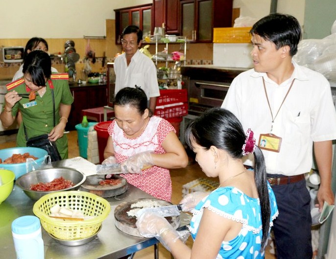 Đoàn kiểm tra liên ngành VSATTP thanh tra, kiểm tra các cơ sở sản xuất thực phẩm tại Gò Dầu.