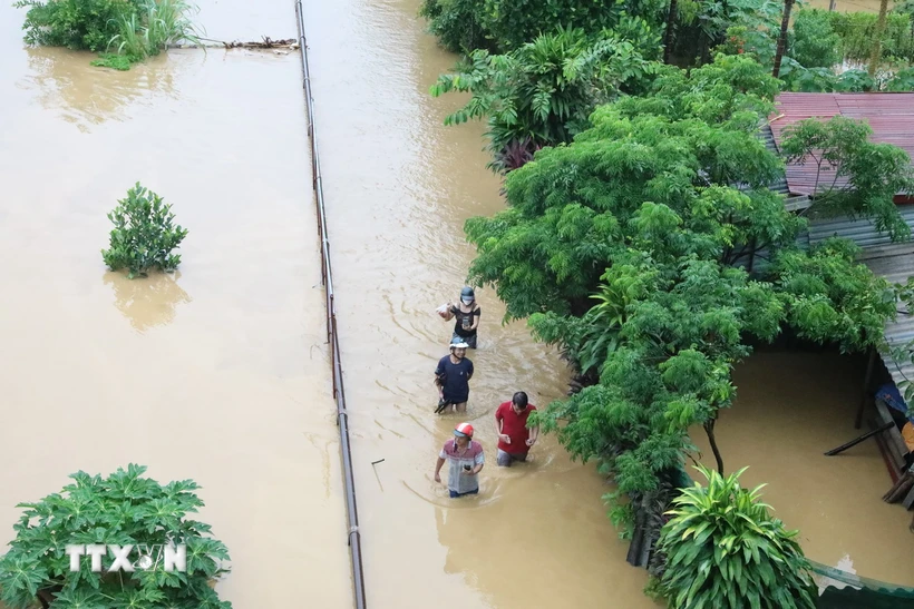 Nước sông Hồng dâng cao trên báo động 3 đã gây ngập úng lớn, chia cắt nhiều thôn, tổ, hộ gia đình tại thành phố Yên Bái.