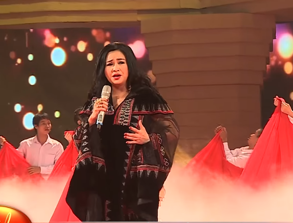 Thanh Lam - con gái nhạc sĩ Thuận Yến - hát Màu hoa đỏ trong Giai điệu tự hào - Ảnh: clip